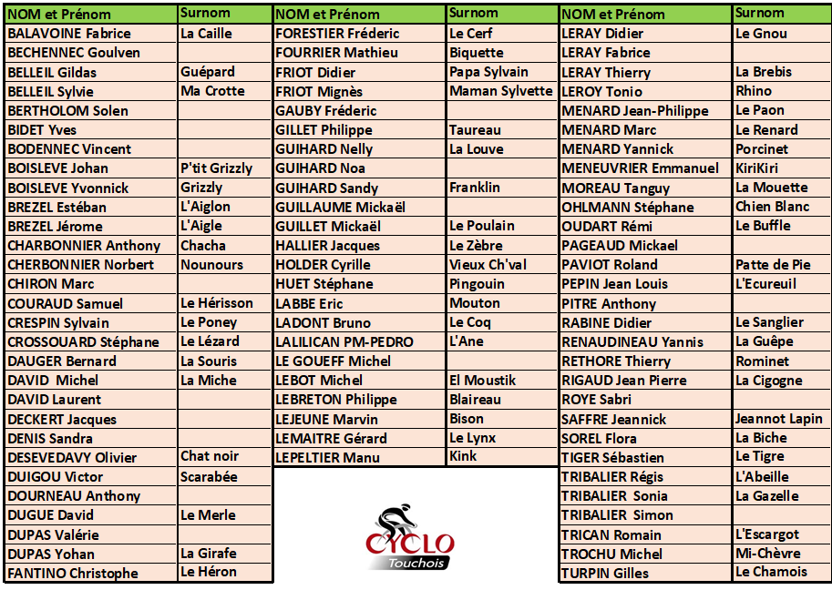 Depuis, en changeant de nom, le « Cyclo Touchois » est né et il est toujours là, bien vivant. Il n’est plus une section des Jeunes des Touches mais un club autonome, à part entière, depuis la présidence d’Yves Ménard. Un nom toujours bien présent dans le club puisque sa destinée est désormais confiée à Marco, un autre Ménard.